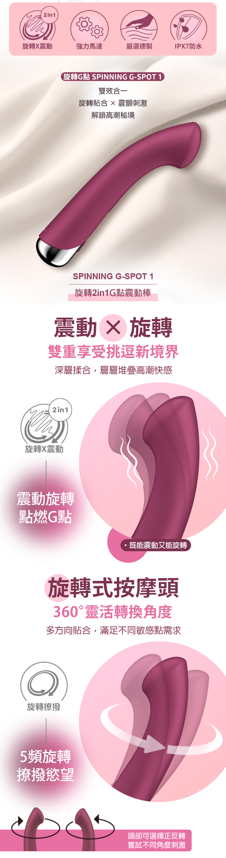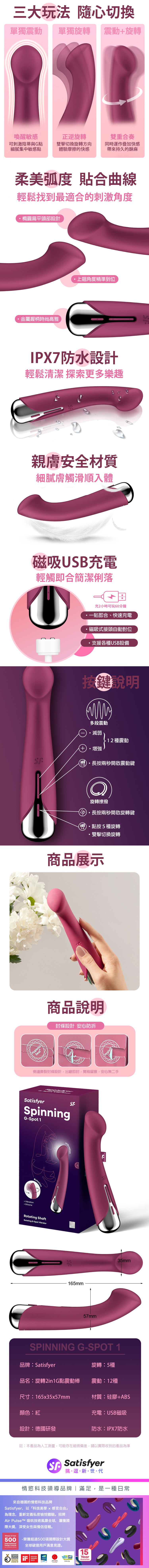 品名:Satisfyer|Spinning G-Spot 1|旋轉G點震動按摩棒 玫紅