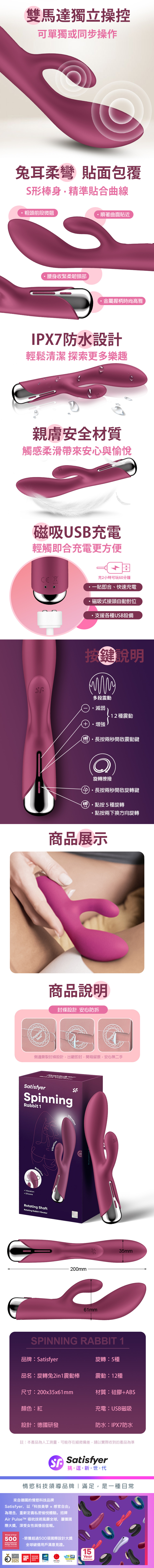 品名:Satisfyer|Spinning Rabbit 1|旋轉兔GC點按摩棒 紅